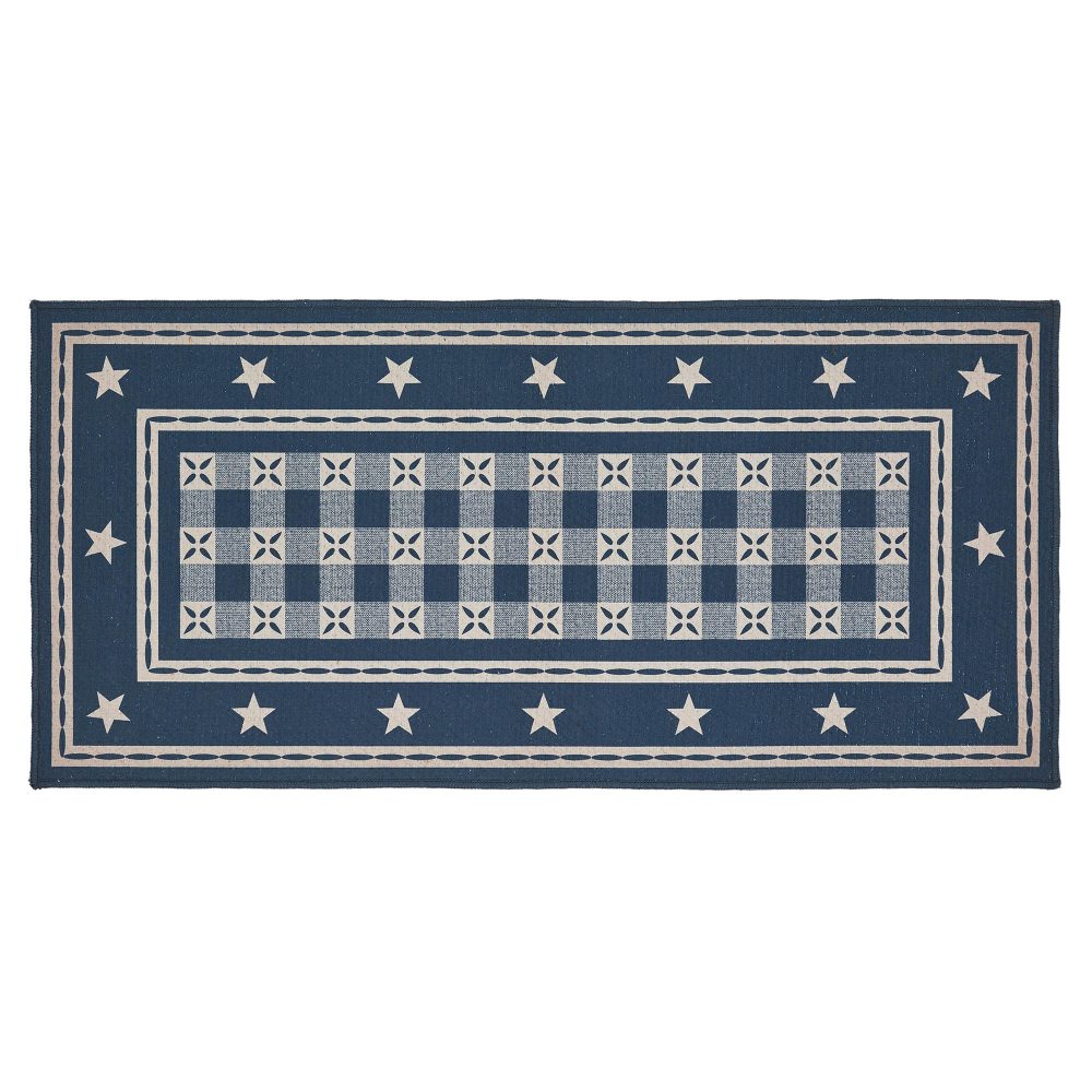 Introduce a touch of Americana charm into your home with the My Country Collection Polyester Rug in Deep Indigo. This 17x36-inch rectangular area rug features a captivating stars print that celebrates the spirit of the country. Crafted from durable polyester, this rug is perfect for adding a patriotic and classic country touch to any space. The My Country Collection Polyester Rug in Deep Indigo seamlessly blends the rich hues of Americana with a timeless, rustic design. The captivating stars print serves as a tribute to the spirit of the country, making this rug an ideal addition to your interior decor. Measuring 17x36 inches, this rectangular accent rug offers versatility and style, enhancing your space with its enduring patriotic appeal. Elevate your surroundings with the heartwarming embrace of Americana, creating a cozy and inviting atmosphere that beautifully complements your country-themed decor. No-slip latex backing helps the rug stay where you want it. Transform your kitchen or entry area with the My Country Collection Polyester Rug in Deep Indigo, a patriotic addition to your floor decor. The stars print showcases the spirit of the country, and the rug's durable polyester construction ensures it can withstand various settings. Measuring 17x36 inches, this rectangular accent rug is ideal for any room, providing a versatile and stylish way to infuse your decor with the timeless charm of Americana. Enhance your surroundings with the warmth and character of Deep Indigo, and bring the enduring allure of country aesthetics into your home.
