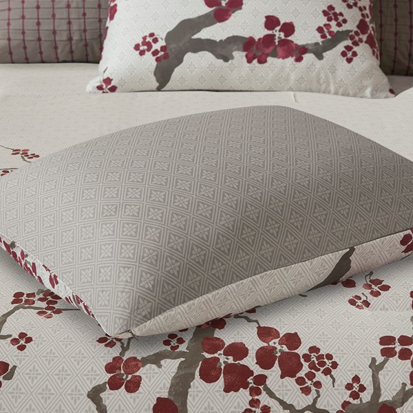 Create an oasis out of your space with the Natori Cherry Blossom Bedding Collection. This elegant comforter mini set features a 100% cotton sateen face with a diamond patterned ground and blooming cherry blossom branches inching up to the top and reverses to a 100% cotton percale heather grey tone of the same diamond pattern print for a dramatic feel. The set is machine washable for easy care and includes one oversized and overfilled comforter and two shams. Complete the look with the coodinating bedding accessories, sold separately, which includes Euro shams and two decorative pillows. This bedding set is also OEKO-TEX certified, meaning it does not contain any harmful substances or chemicals, ensuring quality comfort and wellness. This bedding set may come in rolled or compressed packing and will need to be fluffed up. Use a steam iron to help remove wrinkles easier.