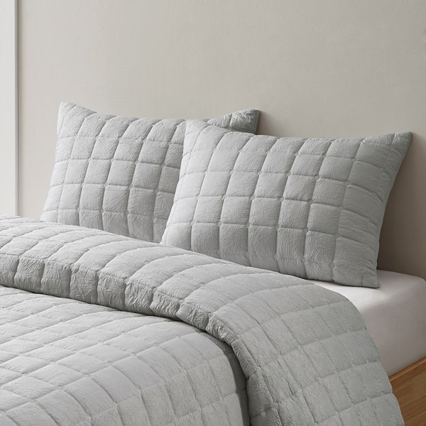 The simple elegance of the Cocoon 3 Piece Quilt Top Duvet Cover Mini Set by N Natori brings an elevated update to your bedroom. The oversized duvet cover flaunts super soft crushed microfiber with a lofty over-quilted box pattern, for a modern look. The 2 pillow shams pair beautifully with the duvet cover to complete the luxurious bedding set. Complete the look with the coodinating bedding accessories – Cocoon Euro shams that are sold separately. Machine washable for easy care, this oversized solid duvet cover easily covers high depth mattresses and provides a fresh and clean addition to your bedroom decor. A button closure allows you to place a padded insert within the duvet cover and inside corner ties prevent it from shifting (insert is NOT included). Pair this look up with N Natori Soho Geo bedding collection for more loft.
