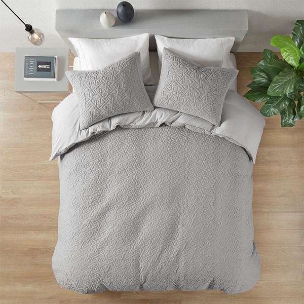 N Natori Origami 3 Piece Oversized Knit Quilted Top Duvet Cover Mini Set in Grey, King/Cal King NS12-3728