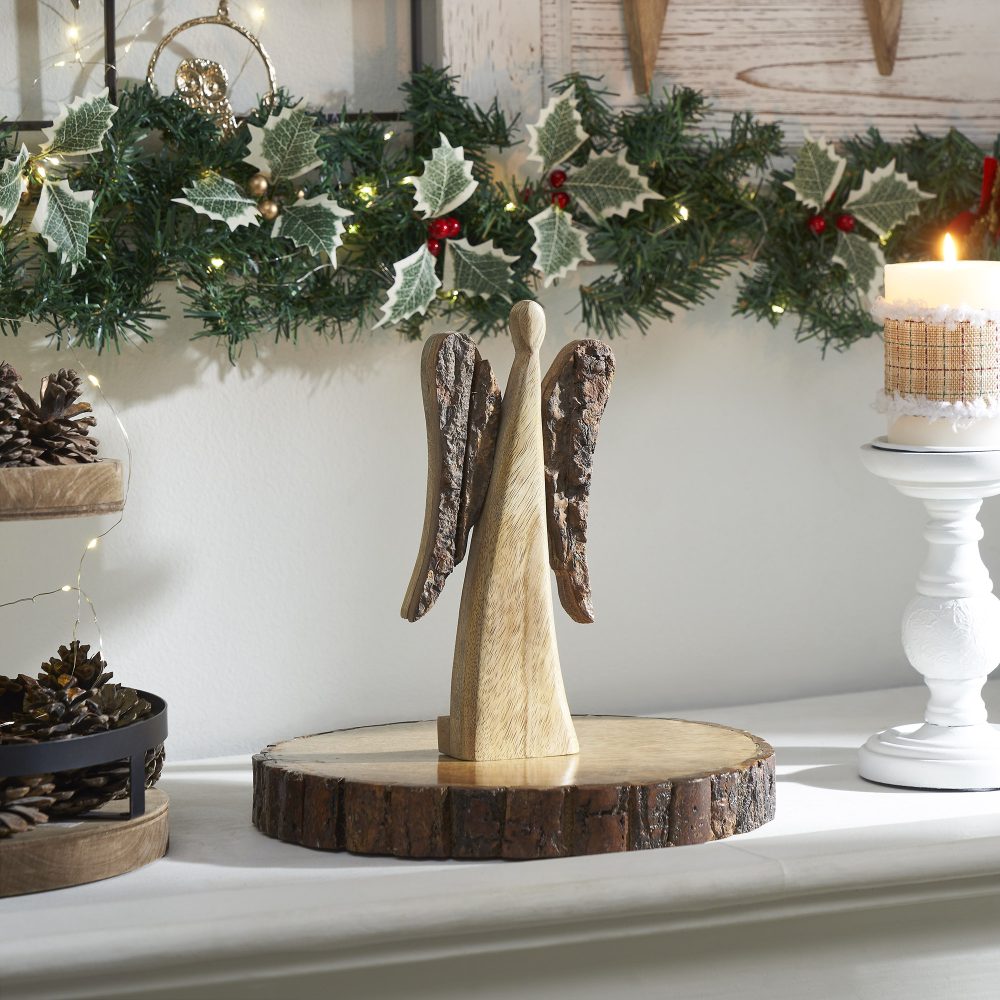 - Two-Tone Angel Design: Features a beautifully crafted two-tone angel with dark rustic wings and a light natural body, providing a rustic yet elegant touch to your Christmas decor.