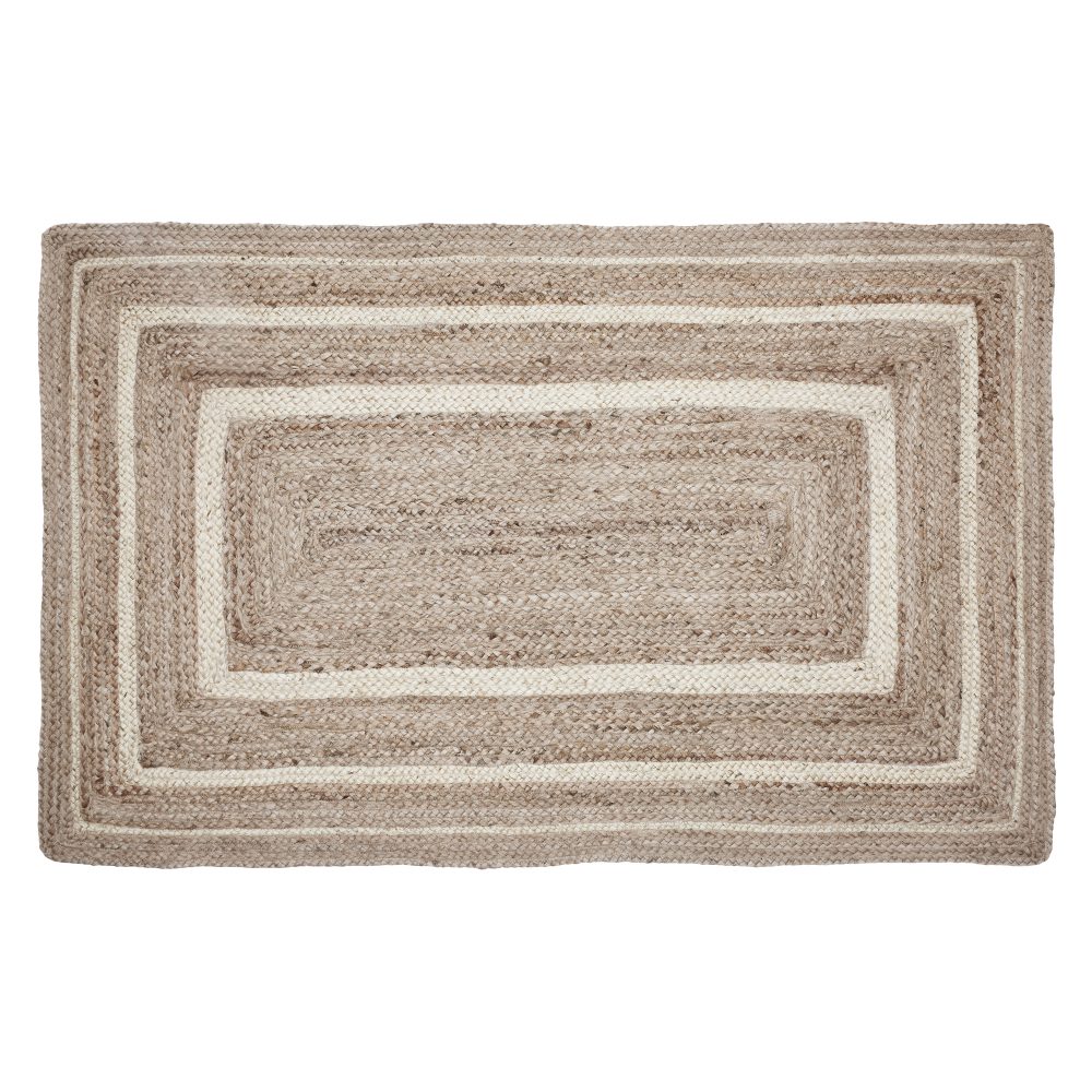 Create a bright, refreshing feeling with creamy cottage colors in a curl-resistant jute blend that adds style and safety anywhere a mid-size accent rug is needed. The Natural & Creme Jute Rug measures 27x48 inches and features a classic rectangular shape and tight braids constructed with a durable jute blend. The special blend relaxes faster and stays flat. The included PVC mat makes sure your beautifully braided jute rug stays exactly where it should. Features a blend of natural tan and light creme for a shabby chic look that complements a wide array of modern farmhouse decor.