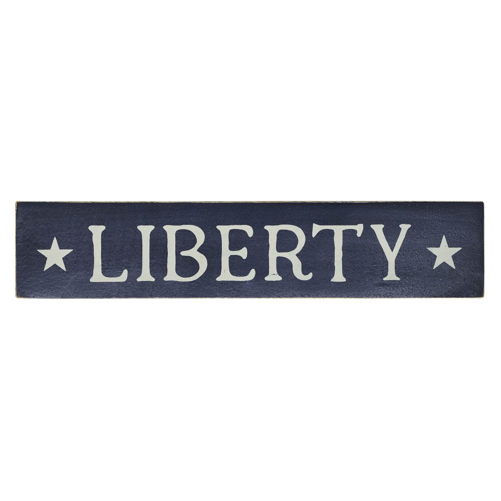 Add a touch of patriotic charm to your Independence Day Decor with the VHC Brands Navy Liberty Wooden Sign. Measuring 3x14 inches and crafted from printed tropical wood, this rectangle-shaped sign effortlessly enhances the ambiance of your Americana-themed spaces. The soothing Faded Blue hue adds a subtle and timeless appeal, making it a versatile piece that complements various rooms in your home, including the bathroom, bedroom, dining room, entry, kitchen, and living room. Embrace the spirit of freedom with the distinctive Americana style of the Navy Liberty Wooden Sign. Featuring the word "Liberty" in patriotic text, this printed tropical wood sign serves as a poignant reminder of the cherished values celebrated during Independence Day. The Faded Blue finish imparts a calming and vintage feel, making it an ideal choice for those seeking a blend of country aesthetics and patriotic pride in their home decor. With its rectangle shape, this sign seamlessly fits into any space, making a bold statement of American heritage. Celebrate the timeless ideals of liberty and freedom with the VHC Brands Navy Liberty Wooden Sign. Measuring 3x14 inches, this rectangle-shaped sign is crafted from printed tropical wood in a soothing Faded Blue hue. Versatile enough for any room, from the bathroom to the living room, this sign features the word "Liberty" in distinctive patriotic text, adding a touch of Americana to your home decor. Embrace the vintage appeal of the Faded Blue finish and showcase your patriotic spirit with this charming sign during your Independence Day celebrations.