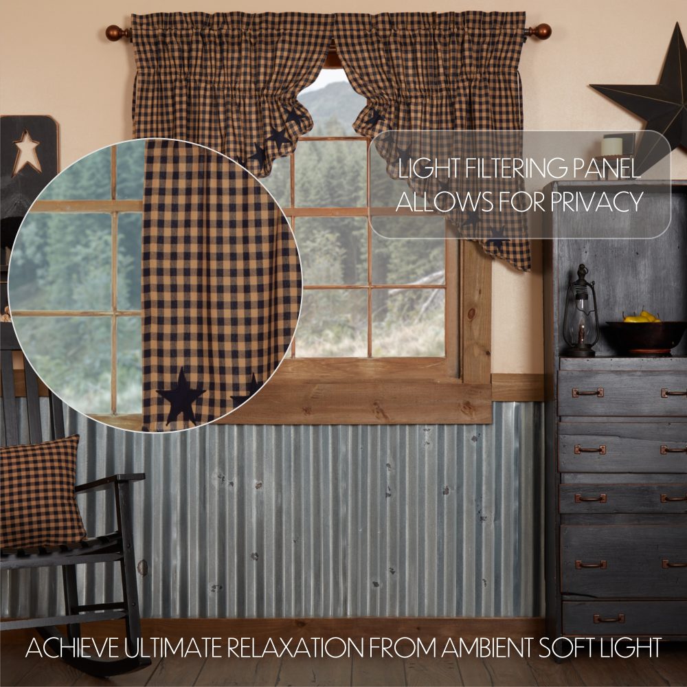 - PREMIUM CONSTRUCTION: Our Prairie Swag curtains are crafted in a lightweight cotton fabric accented with a patchwork star design for a primitive finish that makes a country statement in your living space.