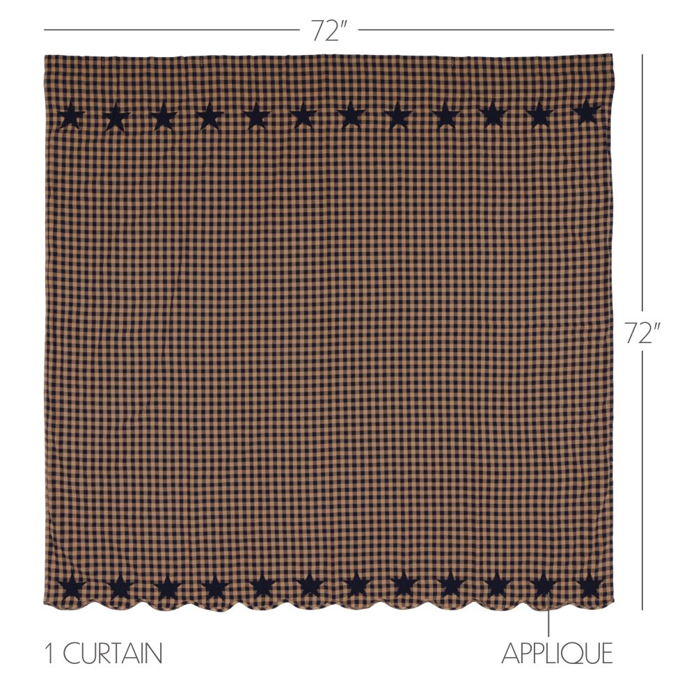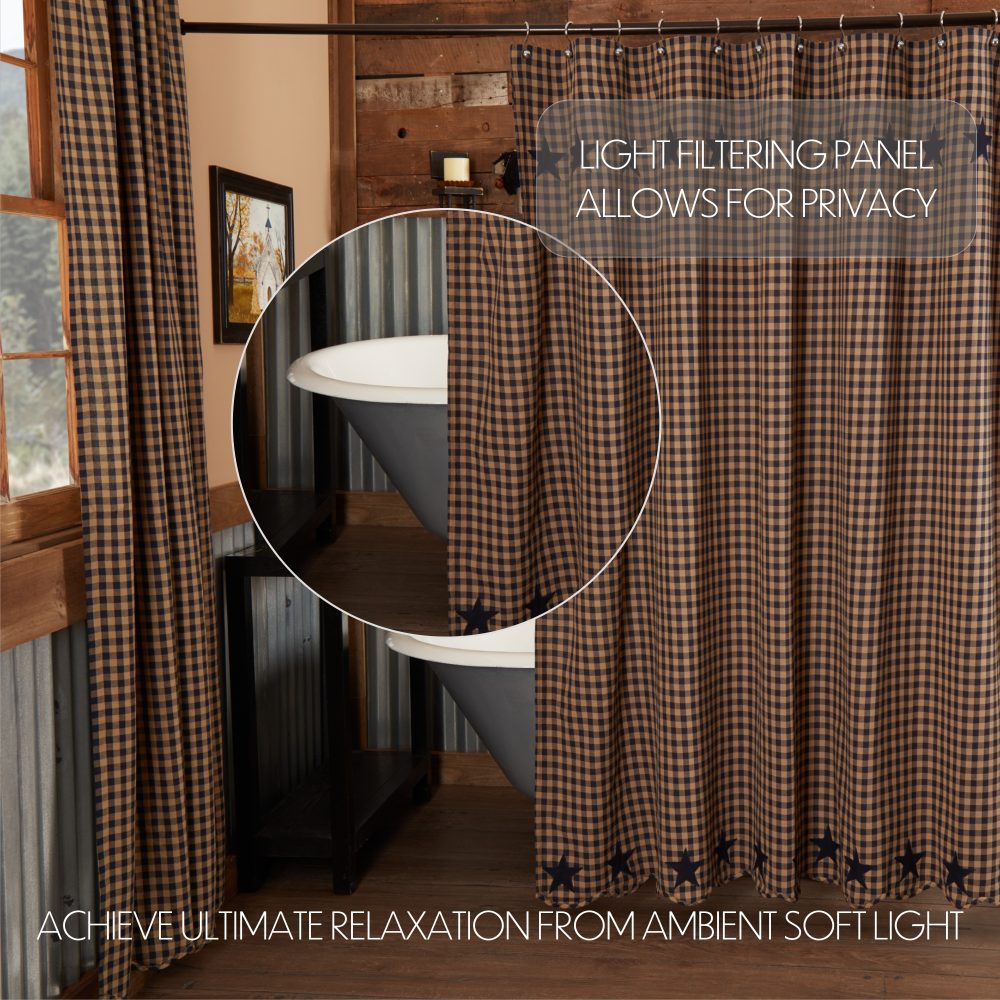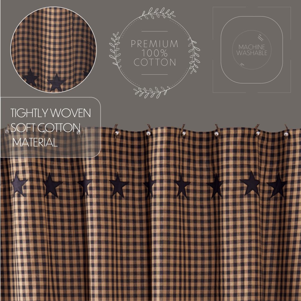 - PREMIUM CONSTRUCTION: Our high-quality pieces are built to last for years to come. Our 100% cotton traditional star-patterned shower curtain is expertly machine-stitched and carefully lined with soft cotton. Features a scalloped edge and appliqued stars with a 3-inch rod pocket for hanging. A plastic liner is recommended to keep your primitive shower curtain in top condition.