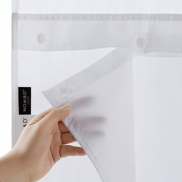 Our Bath Guardian(r) Premium Shower Curtain offers durable protection for the bath and prevents water from splashing outside the tub. A subtle stripe pattern adds a touch of style yet will fit into any bath decor and a voile window allows light into the shower while still maintaining privacy. The all-in-one design allows for easy installation and removal for laundering without the added cost of shower curtain rings. Each curtain comes with a snap-in liner for an extra level of protection and makes these products incredibly easy to launder. All Bath Guardian(r) shower curtains include magnets on their liners for a secure fit and are made from durable polyester. Our Bath Guardian(r) curtains and liners are also treated with our Fuze(r) permanent and all natural antimicrobial to resist mold and mildew and reduce microplastic and microfiber shed into the environment.