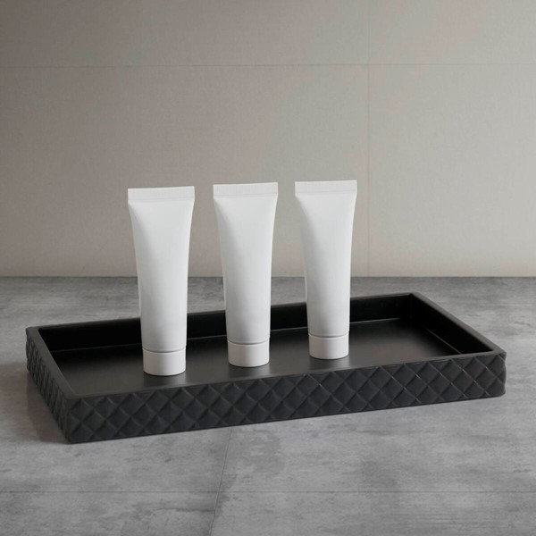 The Nomad Home(r) Resin Bath Accessories set is crafted from durable resin and treated with FUZE(r) antimicrobial technology, this amenity tray offers both function and style in high-use hospitality settings. The elegant diamond-embossed surface adds a touch of luxury, Available in Onyx or Cloud White, it’s a refined finishing touch for any guestroom vanity or bathroom counter.