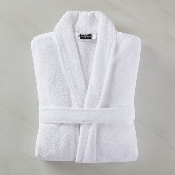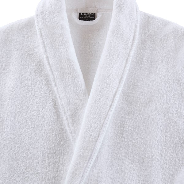 Our Nomad Home(r) Essential Bath Robe is designed to balance guest comfort with lasting performance. Made from soft and absorbent cotton terry, this robe offers everyday comfort that stands up to the demands of hospitality use. The classic shawl collar, double belt loops, and self-tie closure provide a secure and adjustable fit, while full-length sleeves with foldable cuffs add versatility. Two front patch pockets offer convenient storage for spa or in-room essentials. Treated with FUZE(r) antimicrobial technology, this robe stays fresher longer and supports a cleaner, more sustainable guest experience.Machine washable and finished with reinforced stitching for durability through frequent laundering.