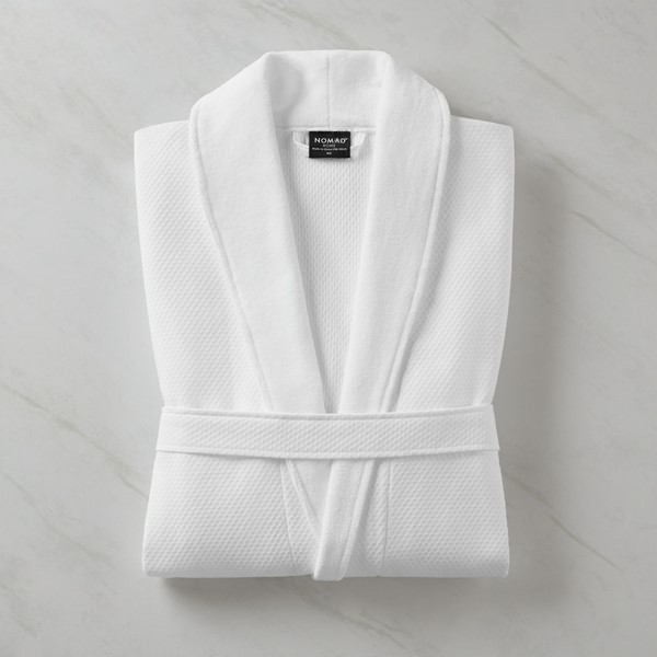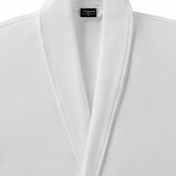 The Nomad Home(r) Luxury Bath Robe is where thoughtful details meet indulgent comfort. This robe is made from premium waffle velour cotton, offering the perfect balance of cozy texture and breathable design. A wide shawl collar, foldable cuffs, and dual-fabric patch pockets add elevated touches, while FUZE(r) antimicrobial treatment helps maintain freshness between uses. Ideal for suites, spas, or VIP amenities, this robe is built to perform in hospitality settings with reinforced stitching for enhanced durability and a longer lifecycle.