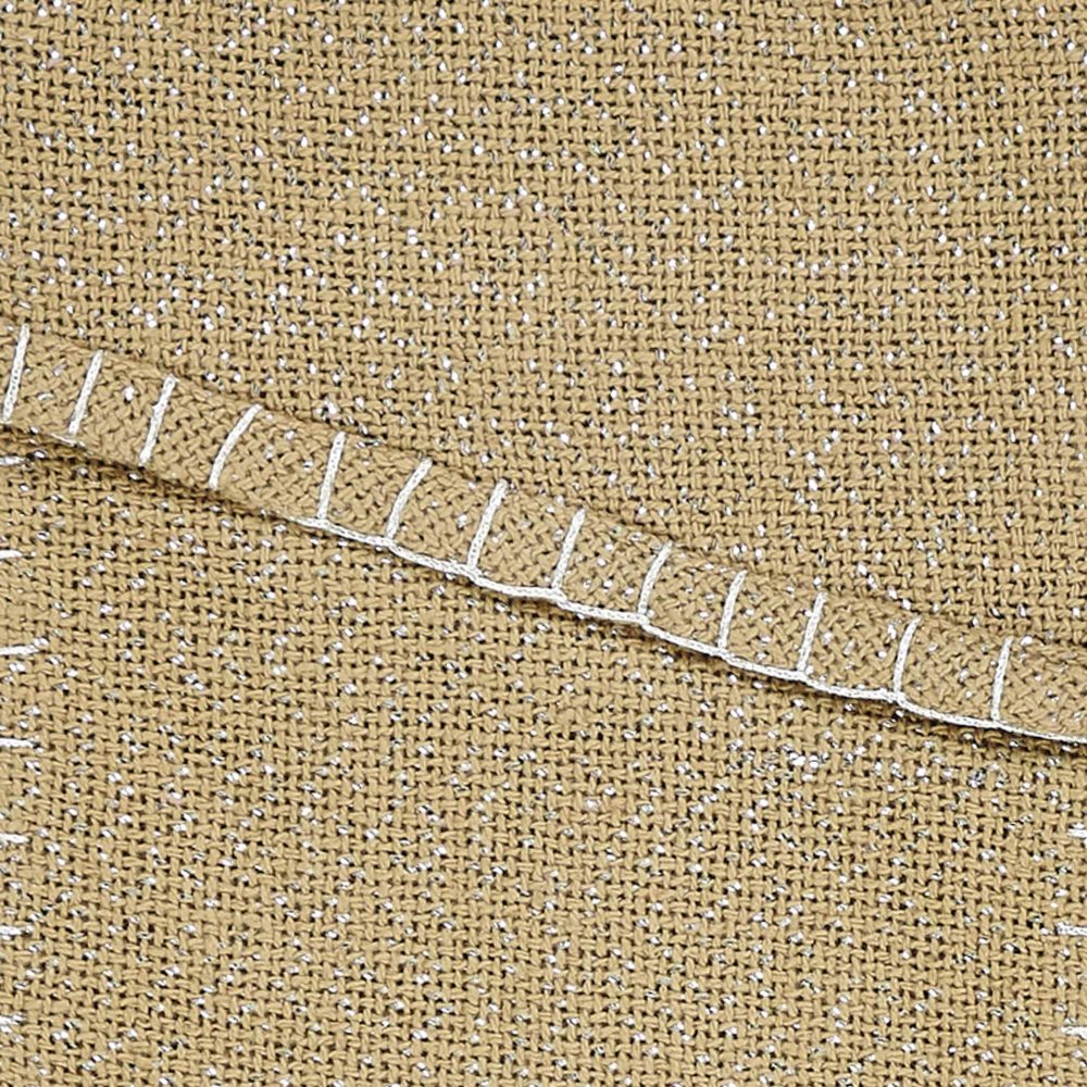• MODERN FARMHOUSE DESIGN Natural burlap woven with silver metallic thread for a shimmery finish