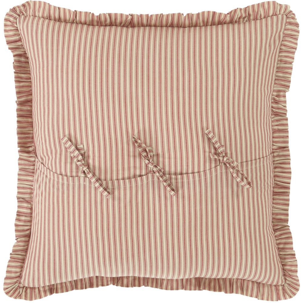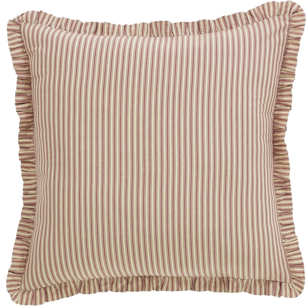 Instantly transform your home with the 26x26 Ozark Red Ticking Stripe Euro Sham. Rich and beautiful parchment white and brick red colors add a country element to your farmhouse home while offsetting your decor. The ruffled edges and unique tie closures complete the look for a classic farmhouse approach with a touch of country appeal.