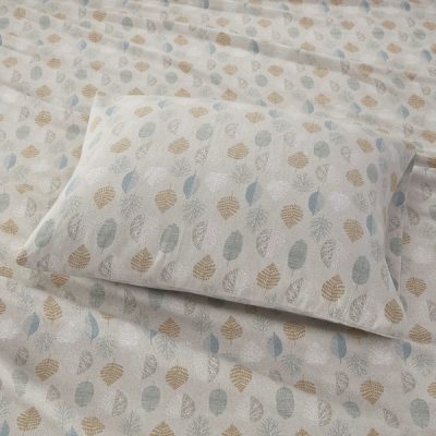 True North by Sleep Philosophy Cozy Cotton Flannel Printed Sheet Set in Multi Leaves, Full TN20-0253