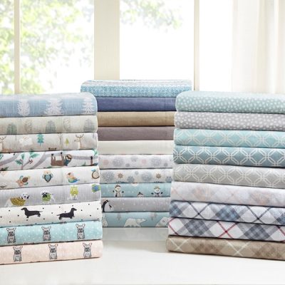 True North by Sleep Philosophy Cozy Cotton Flannel Printed Sheet Set in Grey Solid, King TN20-0109