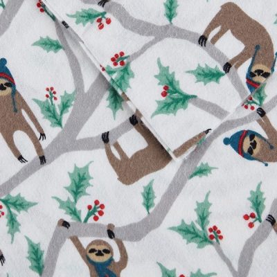 True North by Sleep Philosophy Cozy Cotton Flannel Printed Sheet Set in Multi Sloth, Full TN20-0373