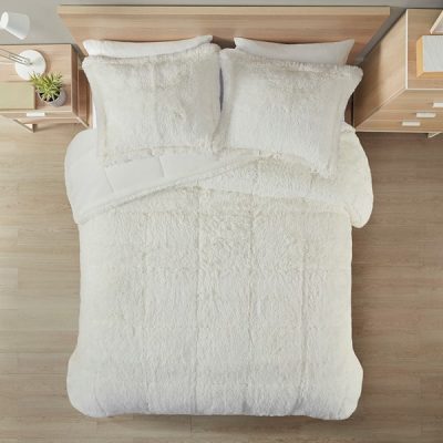Intelligent Design Malea Shaggy Faux Fur Comforter Mini Set in Ivory, Full/Queen ID10-1700