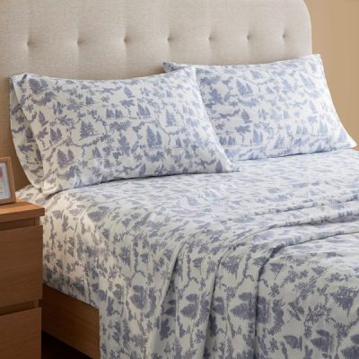True North by Sleep Philosophy Cozy Cotton Flannel Printed Sheet Set in Toile pine trees, King TN20-0626