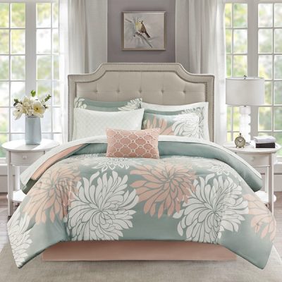 Madison Park Essentials Maible Comforter Set with Cotton Bed Sheets in Aqua, Queen MPE10-729