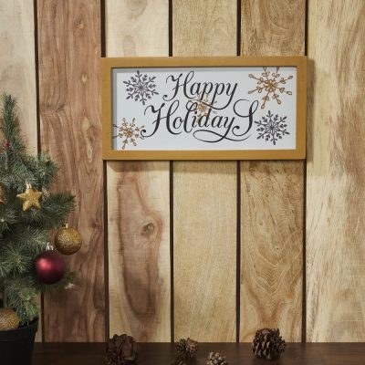 Happy Holidays Snowflakes Framed Wall Hanging Sign 8×16