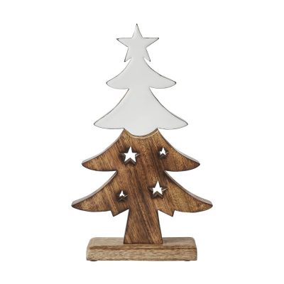 Christmas Tree Two Toned White Natural Wooden Figurine 13.75×8.25×2