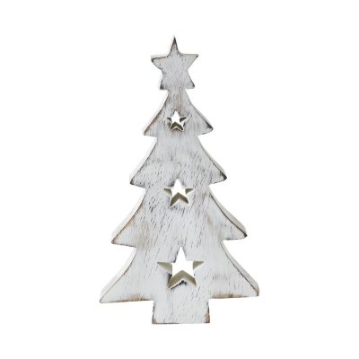 Christmas Tree w/ Stars White Wooden Figurine 8×4.5×1