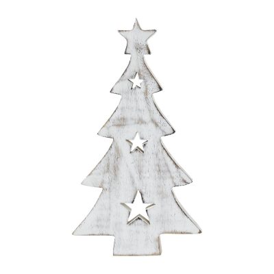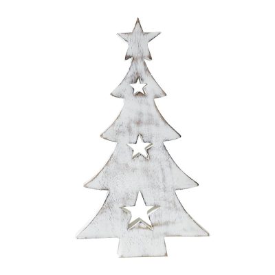 Christmas Tree w/ Stars White Wooden Figurine 10×5.75×1