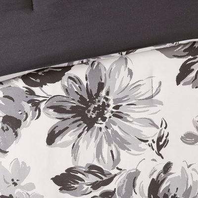 Intelligent Design Dorsey Floral Print Comforter Set in Black/White, Full/Queen ID10-1591