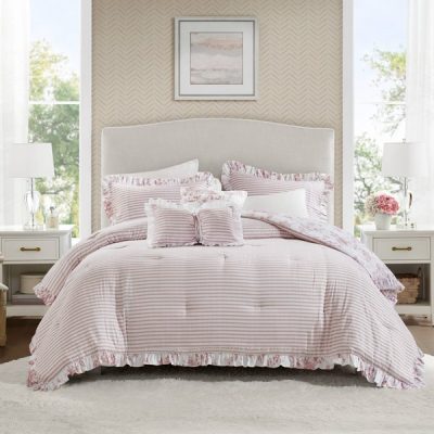 Madison Park Essentials Adele Comforter Set with Decorative Pillows in Pink, King MPE10-1170