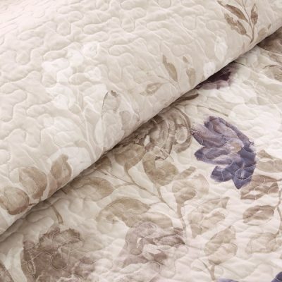 Madison Park Lola 6 Piece Printed Cotton Quilt Set with Throw Pillows in Taupe Grey/Purple, Full/Queen MP13-2312