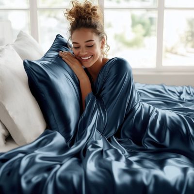 Madison Park Essentials Satin Luxury Sheet Set in Midnight Blue, Twin MPE20-1137