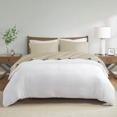 Madison Park Luxurious Brushed Microfiber Deep Pocket Sheet Set in Khaki, Queen MP20-1192