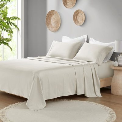 Madison Park 300 Thread Count 100% Organic Cotton Deep Pocket Sheet Set in Ivory, Queen MP20-8253