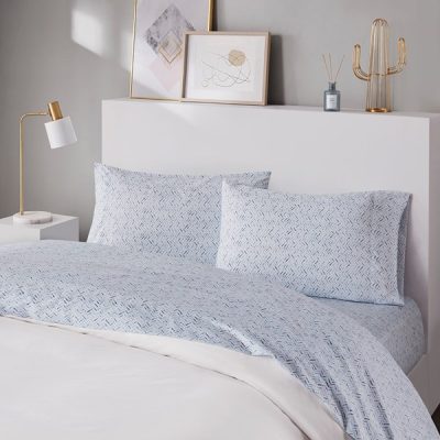 Intelligent Design Printed Microfiber Sheet Set in Blue Chevron, Full ID20-2223
