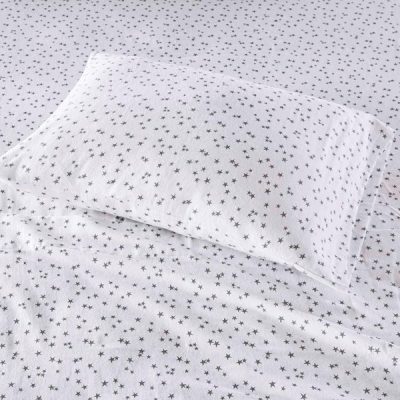 Intelligent Design Cozy Soft Cotton Flannel Printed Sheet Set in Grey Stars, Queen ID20-1543