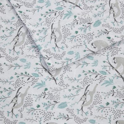 Intelligent Design Cozy Soft Cotton Flannel Printed Sheet Set in Grey Sloths, Full ID20-2046