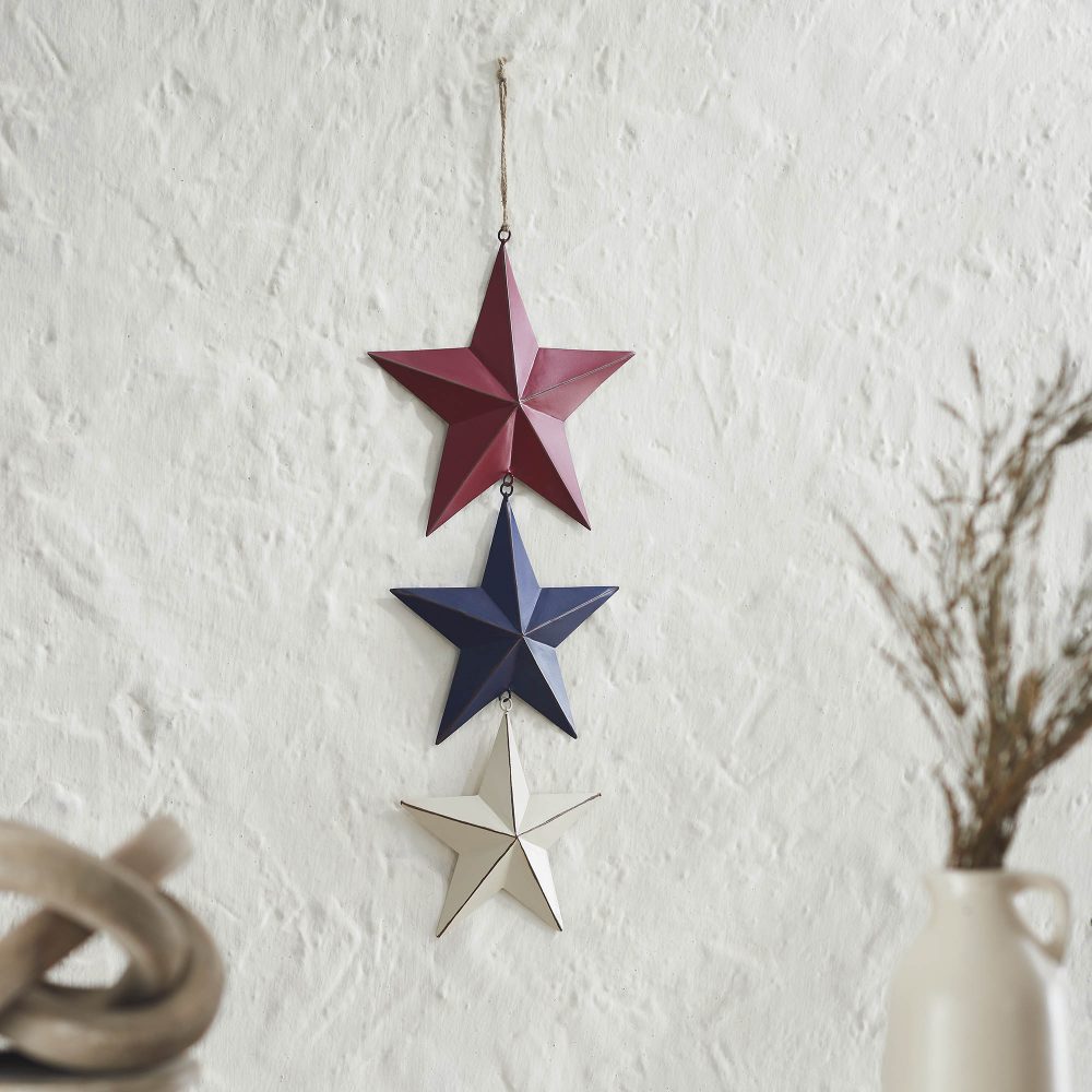 - Patriotic Star Design: Features three distressed finish, faceted barn stars in burgundy, navy, and creme, creating a beautiful Americana-inspired design.