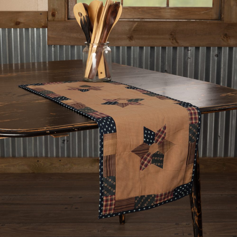 - PRIMITIVE AMERICANA DECOR: Warm, deep tones and a patriotic design form a uniquely primitive Americana look that adds a festive touch to classic country, vintage farmhouse and rustic cabin decor. The premium construction makes the table runner a great choice as a gift to protect tabletops from scratches and spills.