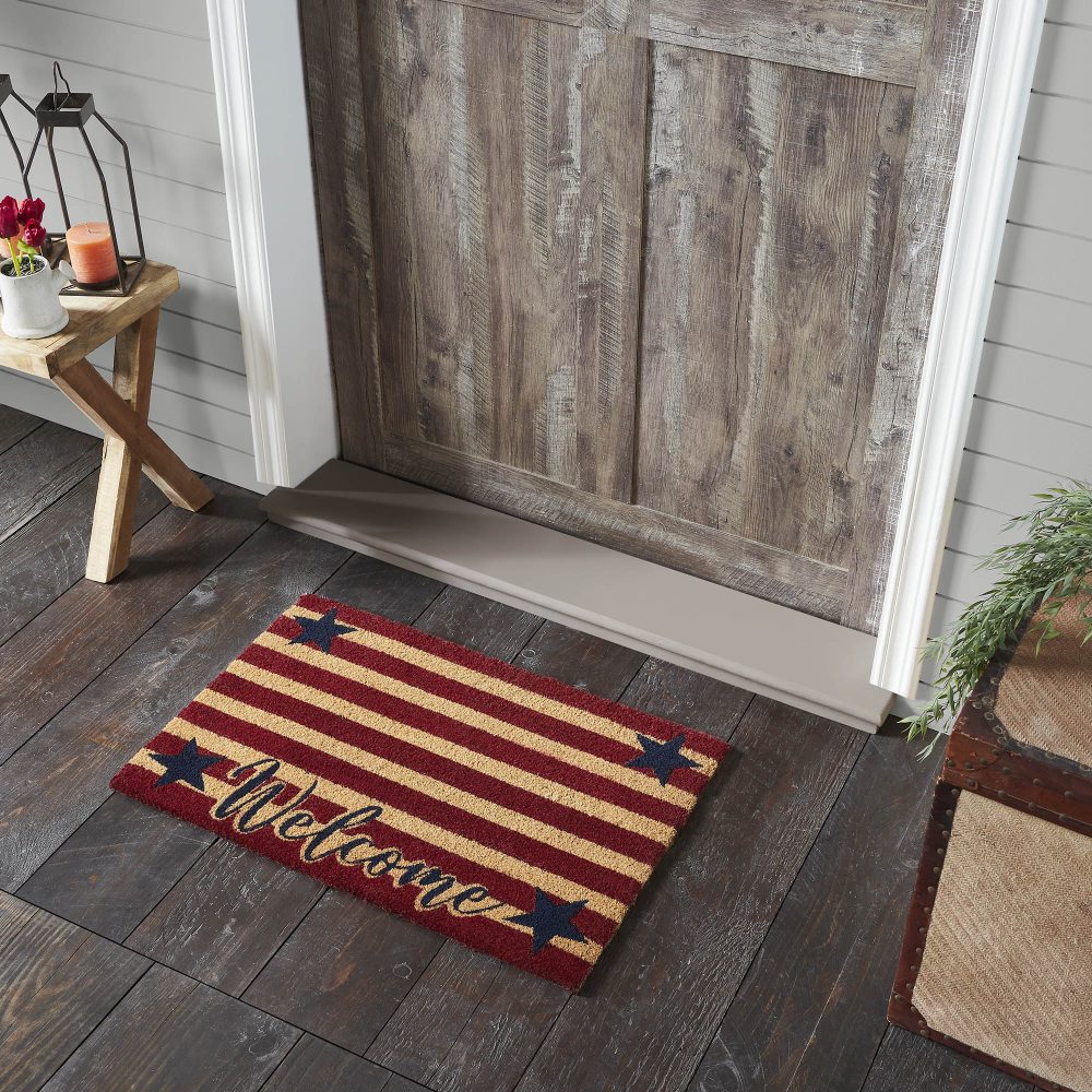 - Patriotic Design: Features blue stars in the corners and a red-striped background, warmly greeting guests with a “Welcome” message, perfect for adding patriotic charm to your entryway.