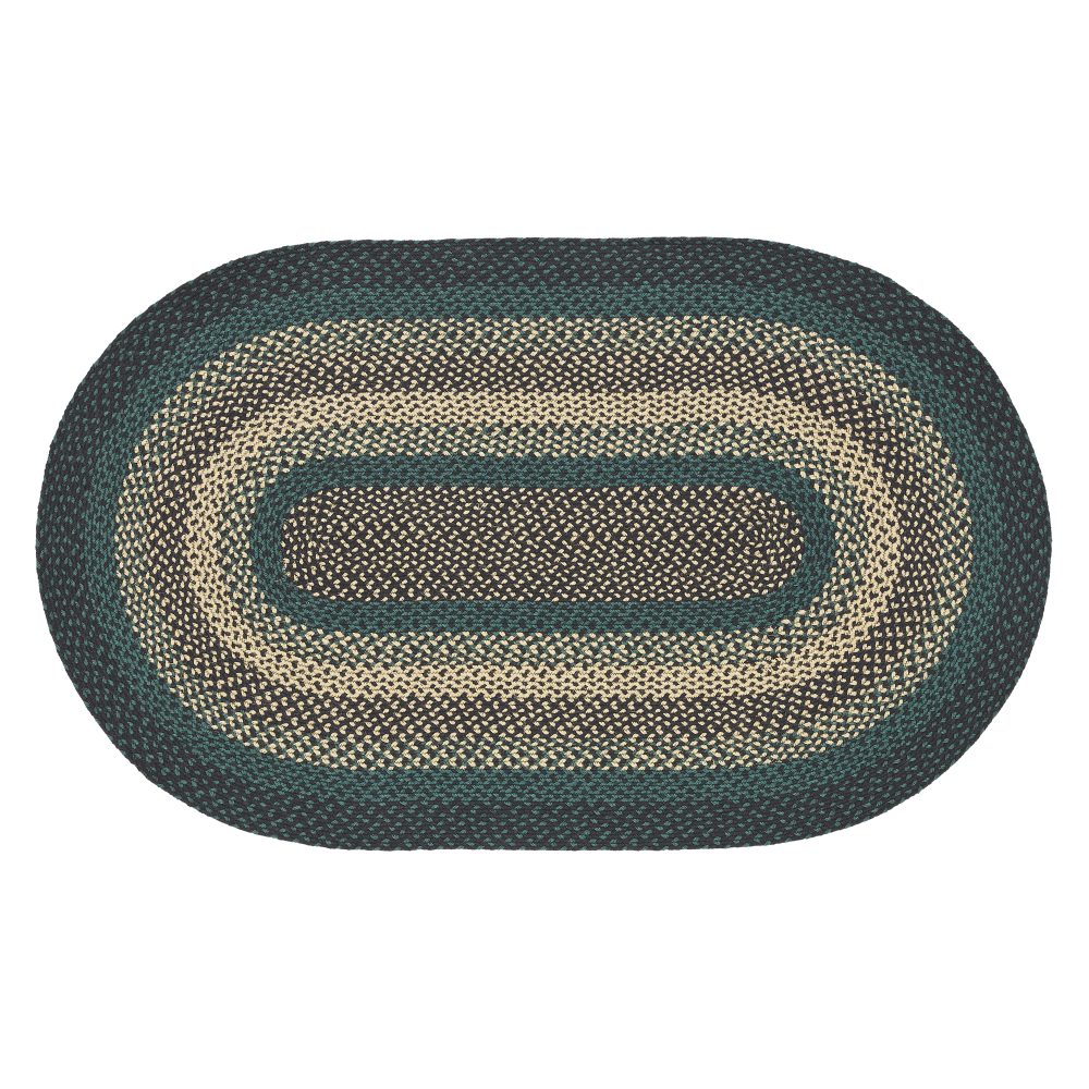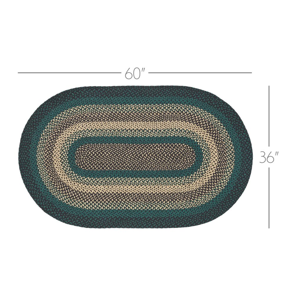 Create a bold, rustic look with deep forest colors in a curl-resistant jute blend that adds style and safety anywhere a large accent rug is needed. The Pine Grove Jute Rug measures 36x60 inches and features a classic oval shape and tight braids constructed with a durable jute blend. The special blend relaxes faster and stays flat. The included PVC mat makes sure your beautifully braided jute rug stays exactly where it should. Features a blend of pine green, natural tan and soft black for a dark, rustic look that complements a wide array of country farmhouse or cozy cabin decor.