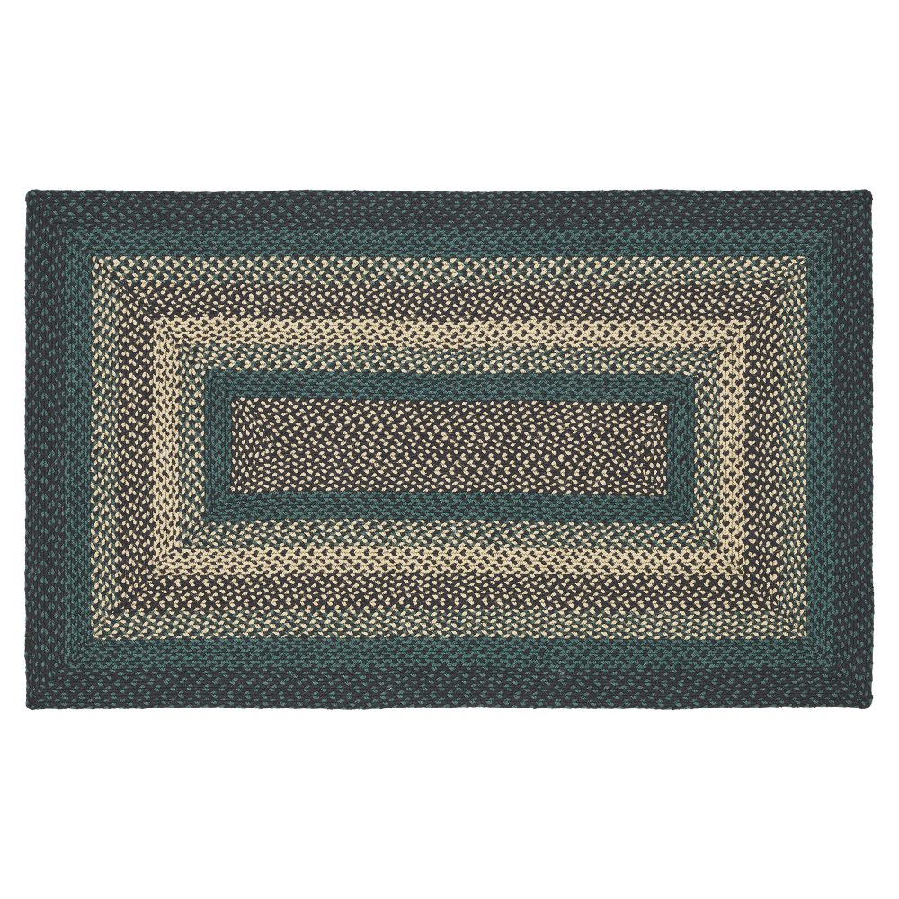 Create a bold, rustic look with deep forest colors in a curl-resistant jute blend that adds style and safety anywhere a large accent rug is needed. The Pine Grove Jute Rug measures 36x60 inches and features a classic rectangle shape and tight braids constructed with a durable jute blend. The special blend relaxes faster and stays flat. The included PVC mat makes sure your beautifully braided jute rug stays exactly where it should. Features a blend of pine green, natural tan and soft black for a dark, rustic look that complements a wide array of country farmhouse or cozy cabin decor.