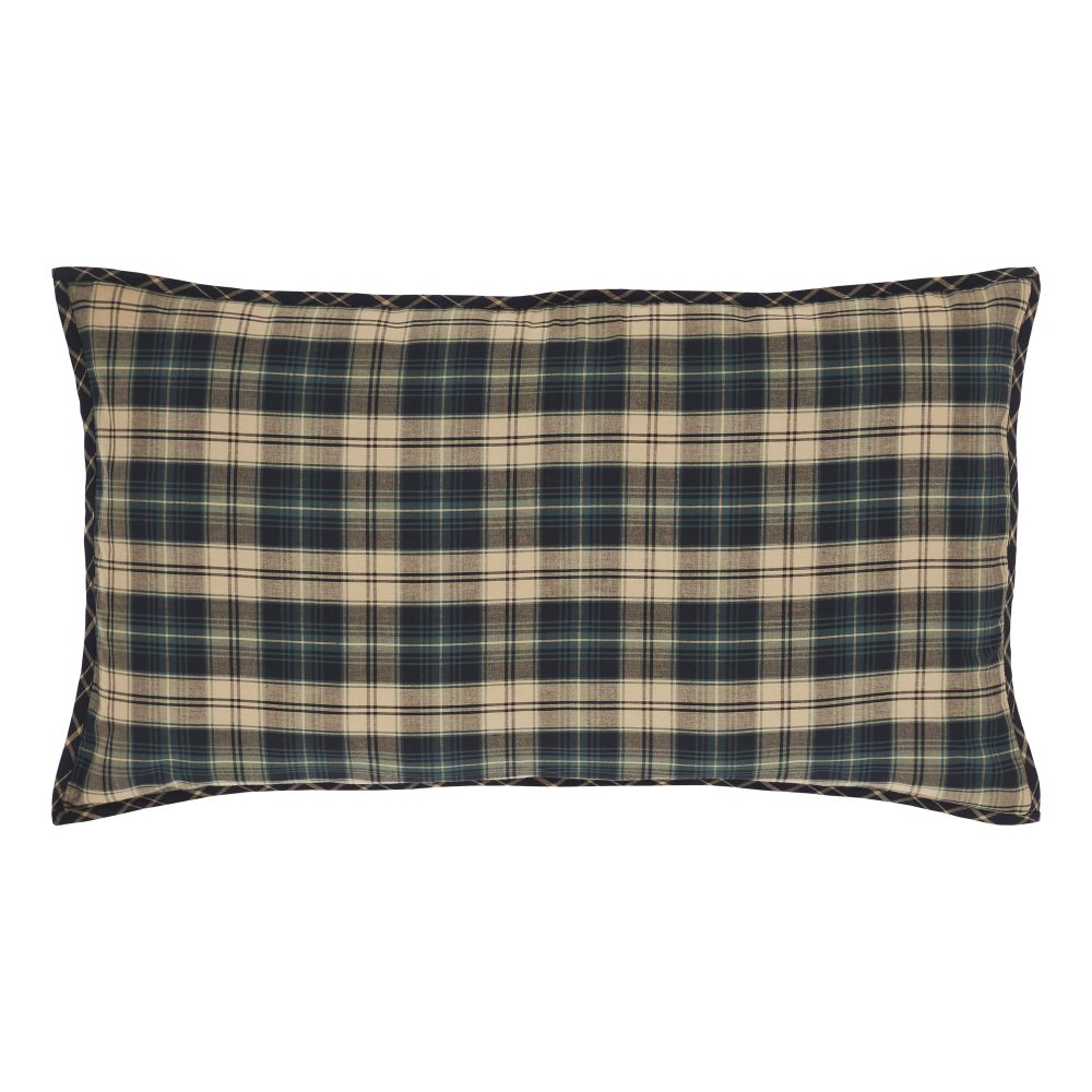 Transform your home into a cozy rustic retreat with rich black and beautiful pine green. The Pine Grove Fabric King Sham measures 21x37 and features soft, cotton fabric in a classic plaid pattern in deep green and warm tan. Reverses to soft black and tan plaid with button-style closures. The reversible patterns in coordinating deep, woodsy hues create a warm and welcoming look perfect for classic country and lodge-style decor. Coordinates with the Pine Grove Collection by VHC for a complete country farmhouse look for your room. Machine washable and iron safe.