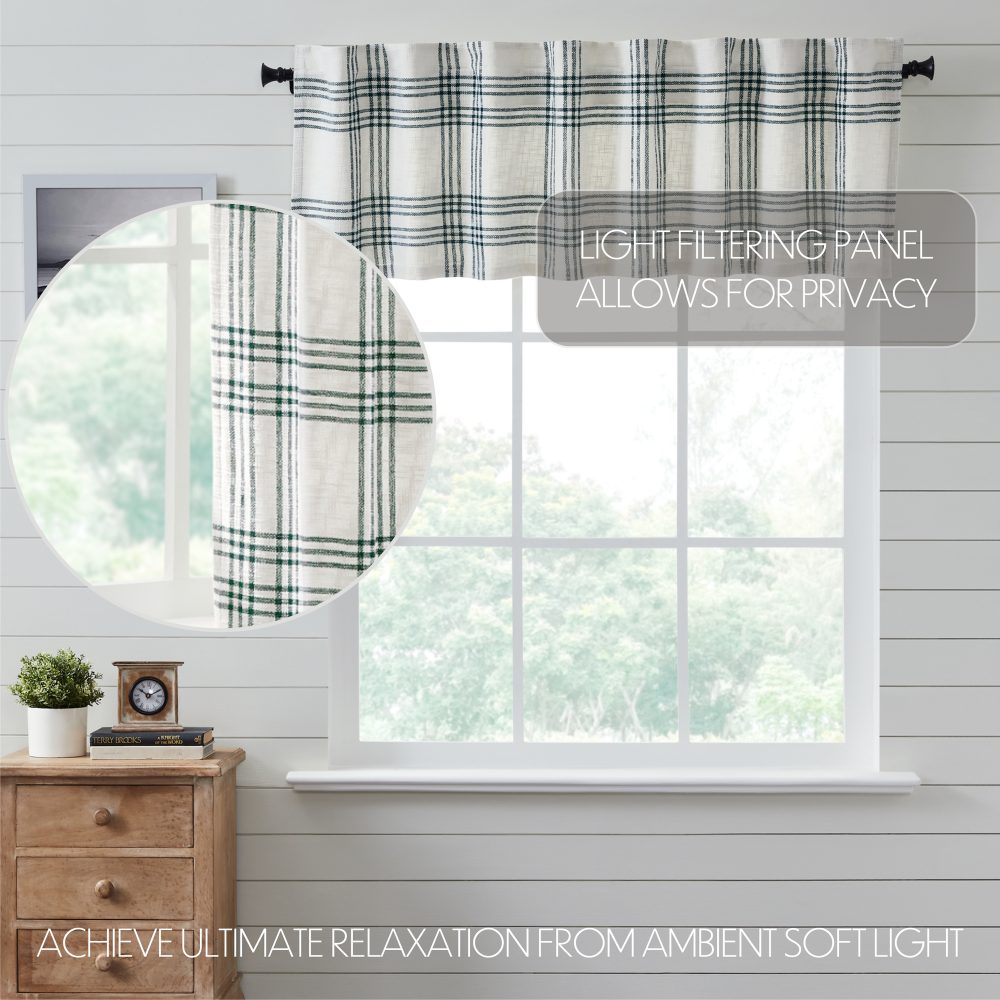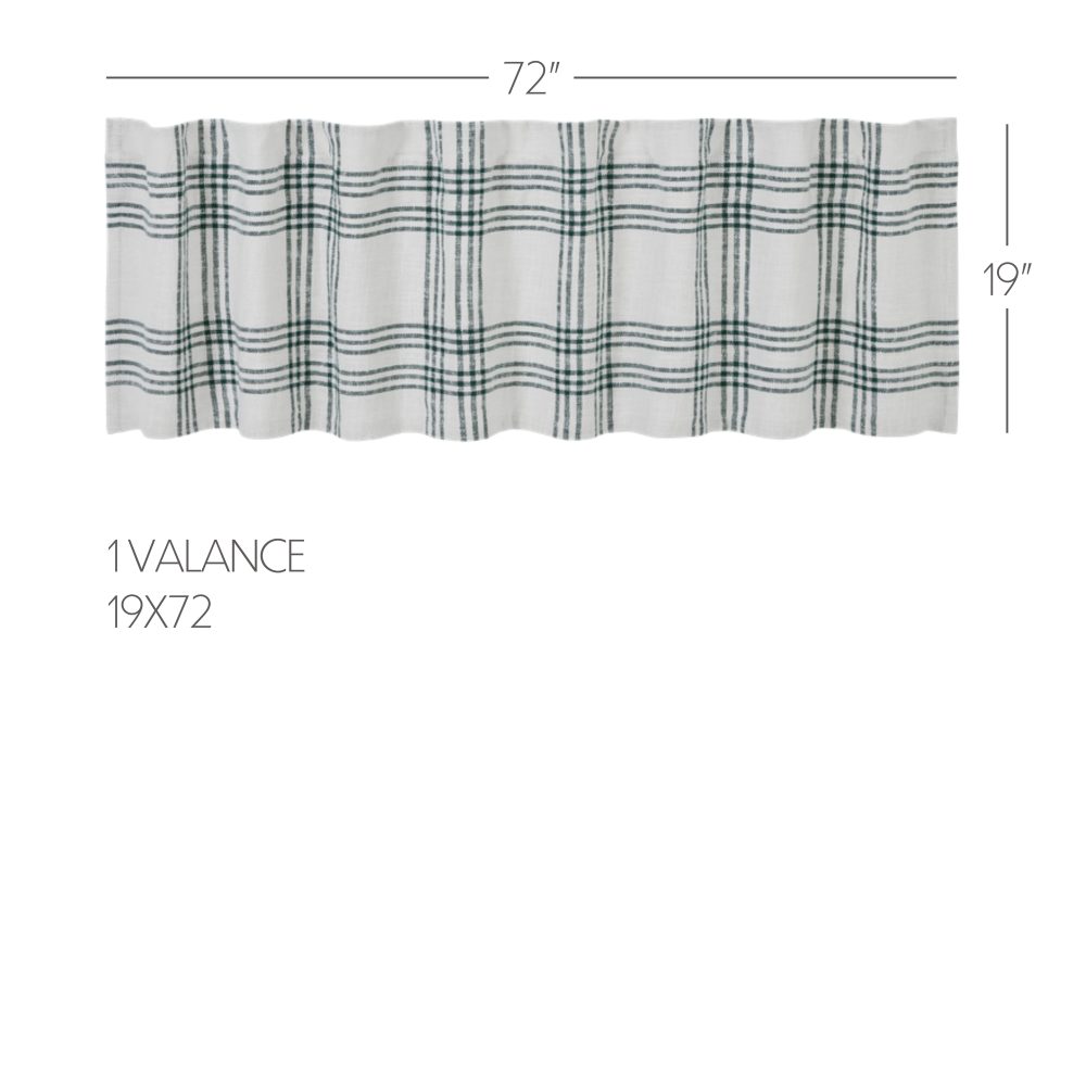 Create a clean, modern farmhouse look for your home. The Pine Grove Plaid Valance 19x72 features beautiful pine green striping over a white base to create a classic yet modern-feeling plaid. Includes a soft, white cotton lining to filter sunlight and prevent fading. Includes a rod pocket and loops for easy hanging.