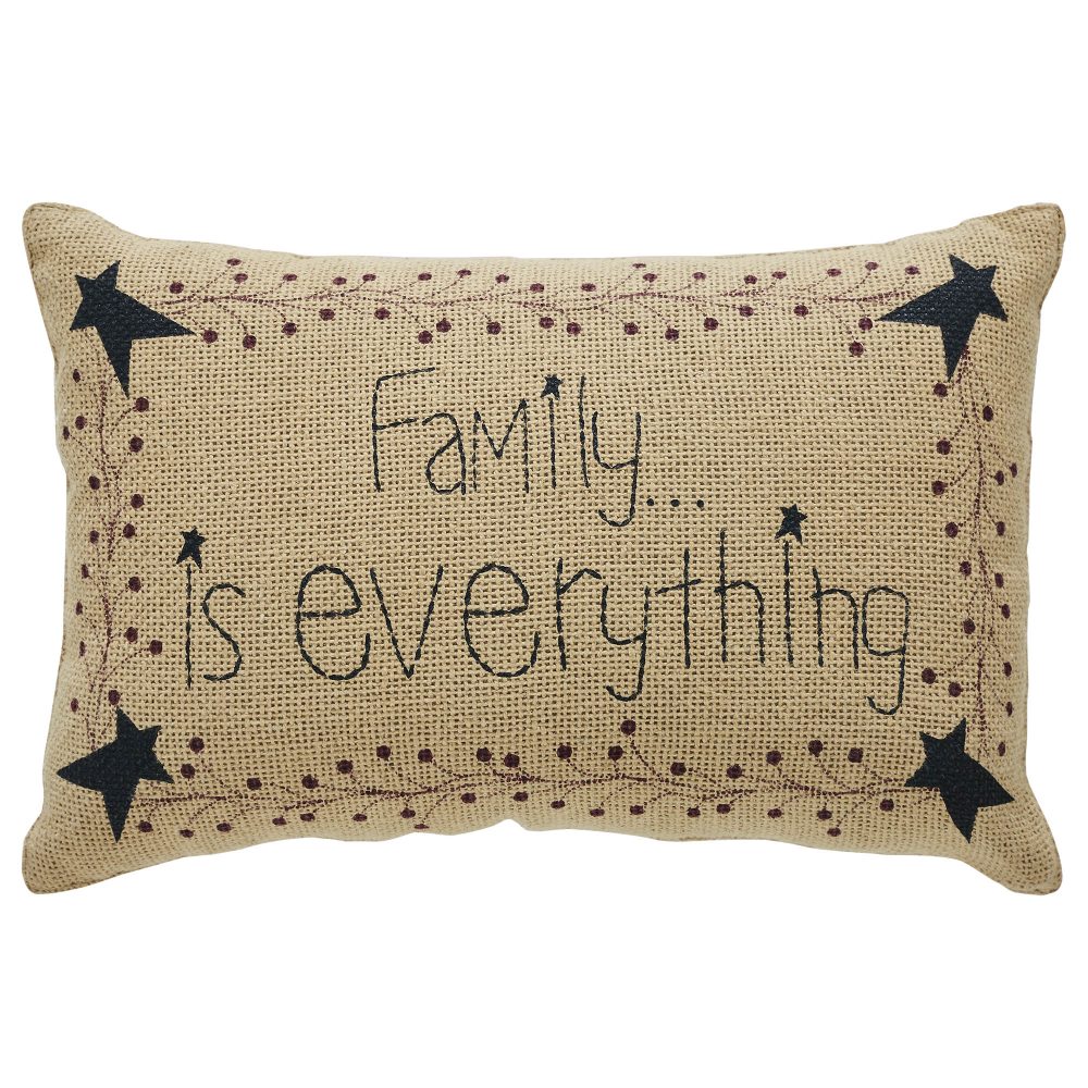 Introducing the VHC Brands Pip Vinestar Family Pillow, a heartwarming addition to your primitive and country decor. Measuring 9.5x14 inches, this cotton pillow, filled with soft polyester is the perfect choice for your couch, bed, or studio. Adorned with a printed text design stating "Family Is Everything" surrounded by primitive stars and vines in natural tones from the Pip Vinestar Collection, this decorative throw pillow adds a touch of rustic charm to your space, celebrating the importance of family bonds. Enhance your primitive and midcentury modern decor with the Pip Vinestar Family Pillow. Its 9.5x14 rectangular shape is versatile, whether you need lumbar support or a stylish accent for your couch. The textured woven fabric in natural tones effortlessly blends with any neutral color scheme, creating an atmosphere of warmth and togetherness in your home. Elevate your decor with this decorative pillow, a statement piece that complements your style, whether it's country, midcentury modern, or simply neutral. Elevate your home's ambiance with the VHC Brands Pip Vinestar Family Pillow, a fusion of primitive charm and modern comfort. Crafted from high-quality cotton and filled with soft polyester, this 9.5x14 rectangular pillow is the perfect choice to accentuate your decor. The printed text design and natural hues make this pillow a versatile addition, creating a warm and inviting atmosphere. Add a touch of rustic charm and family love to your living space with this Pip Vinestar Family Pillow.