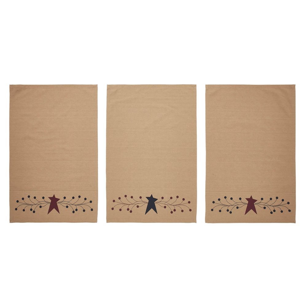 - With their primitive star prints and vine details, these towels add a touch of whimsy to your kitchen space while maintaining a timeless farmhouse charm.