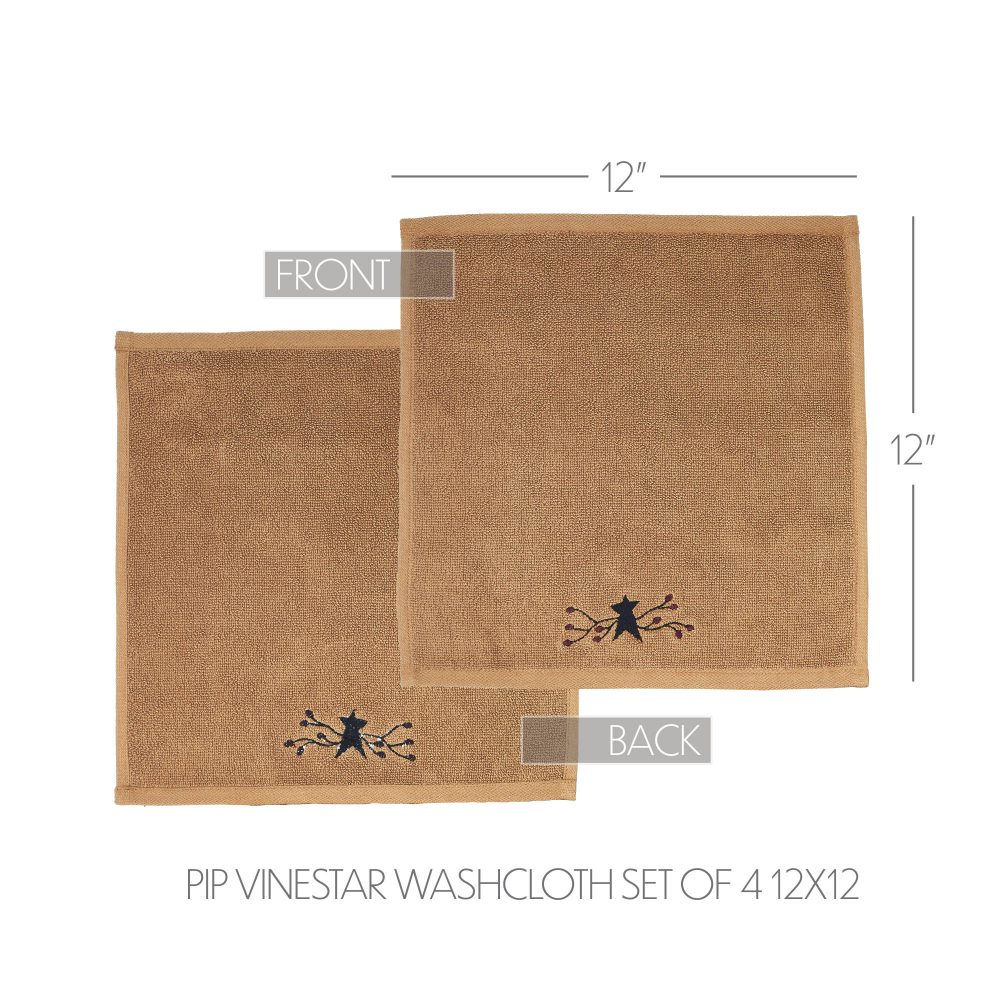 Elevate your bathroom and enjoy the luxurious comfort of the Pip Vinestar Collection Bath Washcloth Set of 4. These 12x12-inch washcloths feature an elegant Primitive Star embroidery, adding a touch of rustic Country charm to your bathing routine. Crafted from soft and absorbent cotton, these washcloths are perfect for the spa, home, gym, or kitchen. Indulge in the plush feel of these washcloths as they gently cleanse your face and body. With a high GSM rating, they provide superior absorbency, making your post-bath or shower experience even more refreshing. This set of four washcloths ensures you always have a fresh and comfortable option on hand. Elevate your bathroom decor with the Pip Vinestar Collection Bath Washcloth Set, designed to pamper you with its woven star design and sumptuous cotton construction. Enhance your bathing experience with the Pip Vinestar Collection Bath Washcloth Set of 4. These 12x12-inch washcloths feature an exquisite Primitive Star embroidery, adding a touch of rustic charm to your bathroom decor. Crafted from soft and absorbent cotton, these washcloths are versatile and perfect for your daily cleansing routine. Whether you use them at home, in the gym, or in the kitchen, their plush texture and high GSM rating ensure a comfortable and luxurious experience.