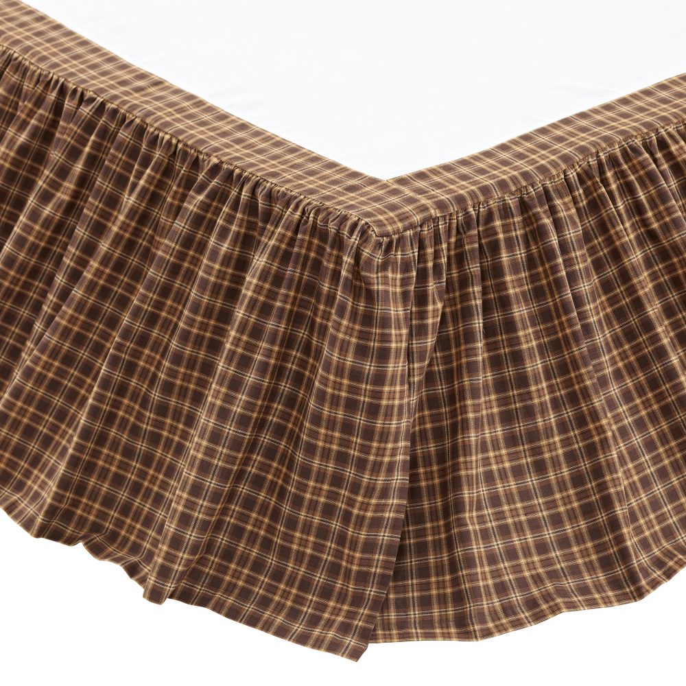 A blend of natural shades of brown in a cabin-friendly plaid provides the perfect foundation for your rustic country bedding. The Prescott Queen Bed Skirt measures 60x80 inches and features a long 16-inch drop to ensure the skirt reaches your floor. The country style dust ruffle adds a lovely finishing touch to any room by complementing your decor while concealing under-bed storage and blocking dust accumulation in hard-to-reach areas. Made of 100 percent cotton, this traditional plaid bed skirt is machine washable and iron safe. Coordinates with the Prescott Collection by VHC for rustic lodge style and pairs with the Prescott Quilt (sold separately) for the perfect balance of simple plaid and heirloom-worthy quilting.
