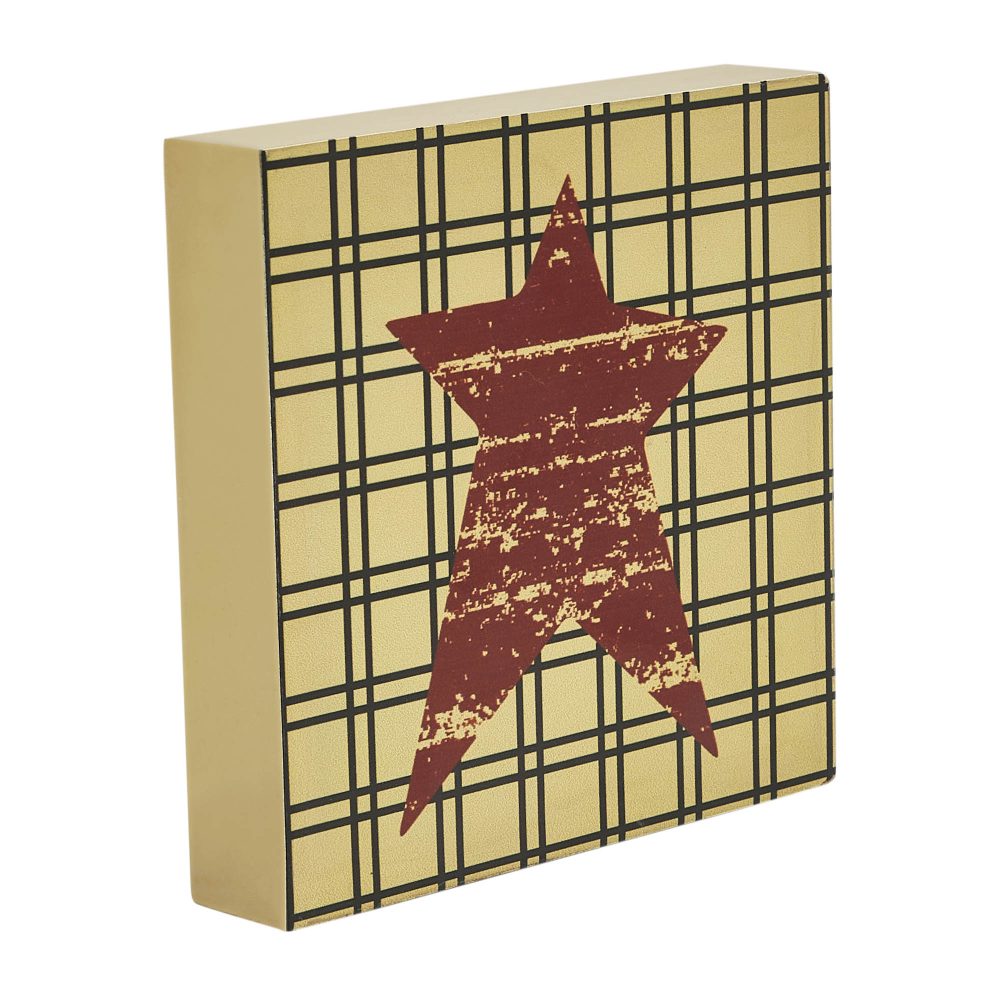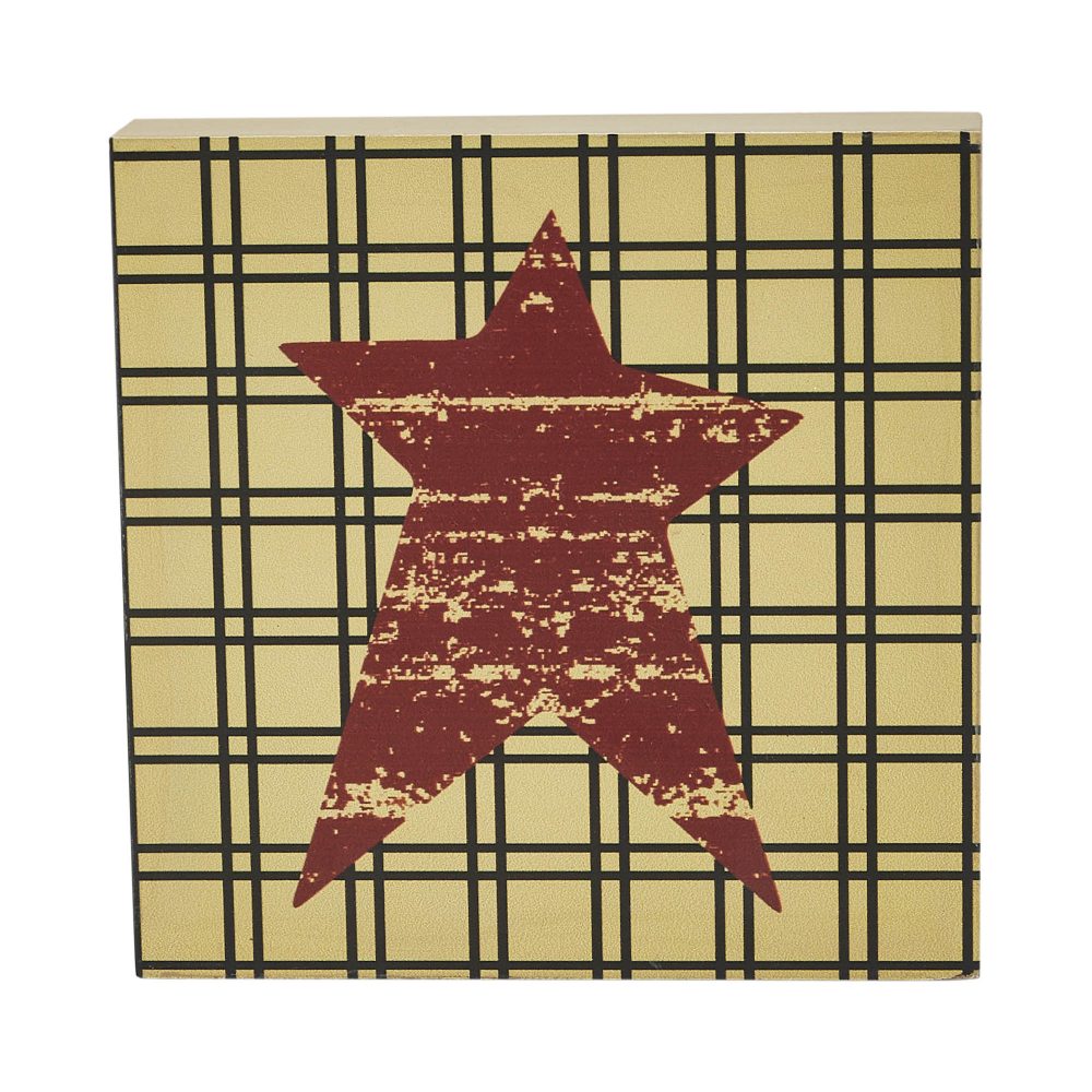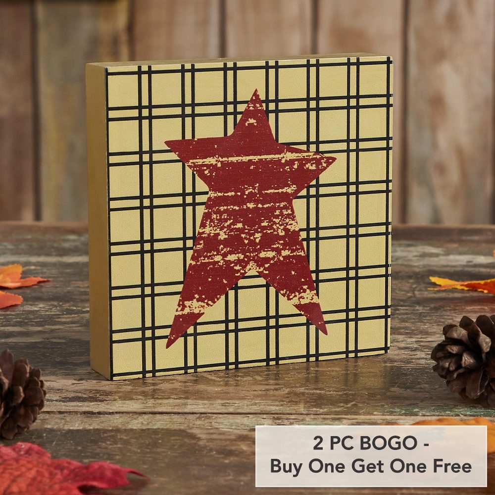 - Sku – 85414 – Primitive Burgundy Star MDF Wood Sign 5×5 Inch Tan Farmhouse Wall & Shelf Decor Plaque (2 Packages)