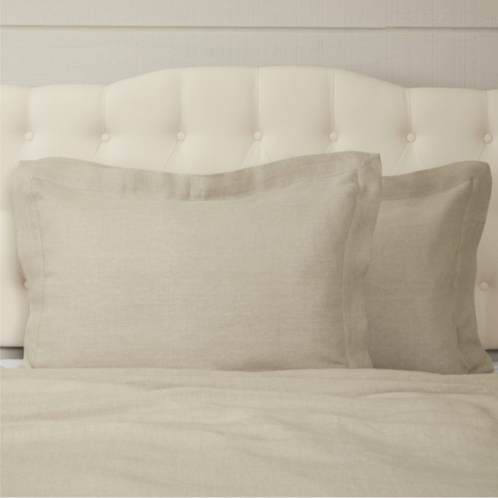 • 100% undyed linen in tranquil Taupe tones. Durable, the fine flax fibers have absorbent and cooling properties, making it a brilliant choice for any bedding ensemble.