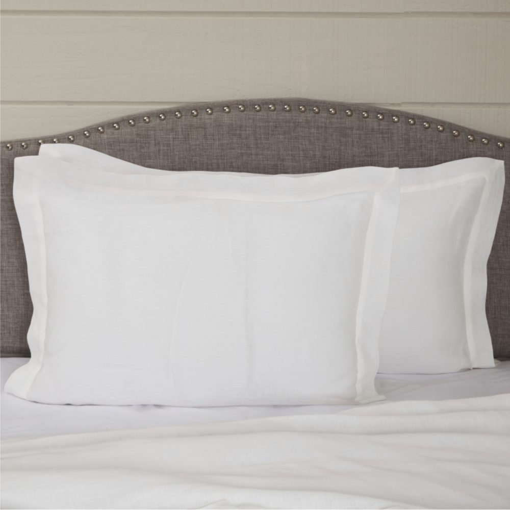 - 100% crisp white linen. Durable, the fine flax fibers have absorbent and cooling properties, making it a brilliant choice for any bedding ensemble.