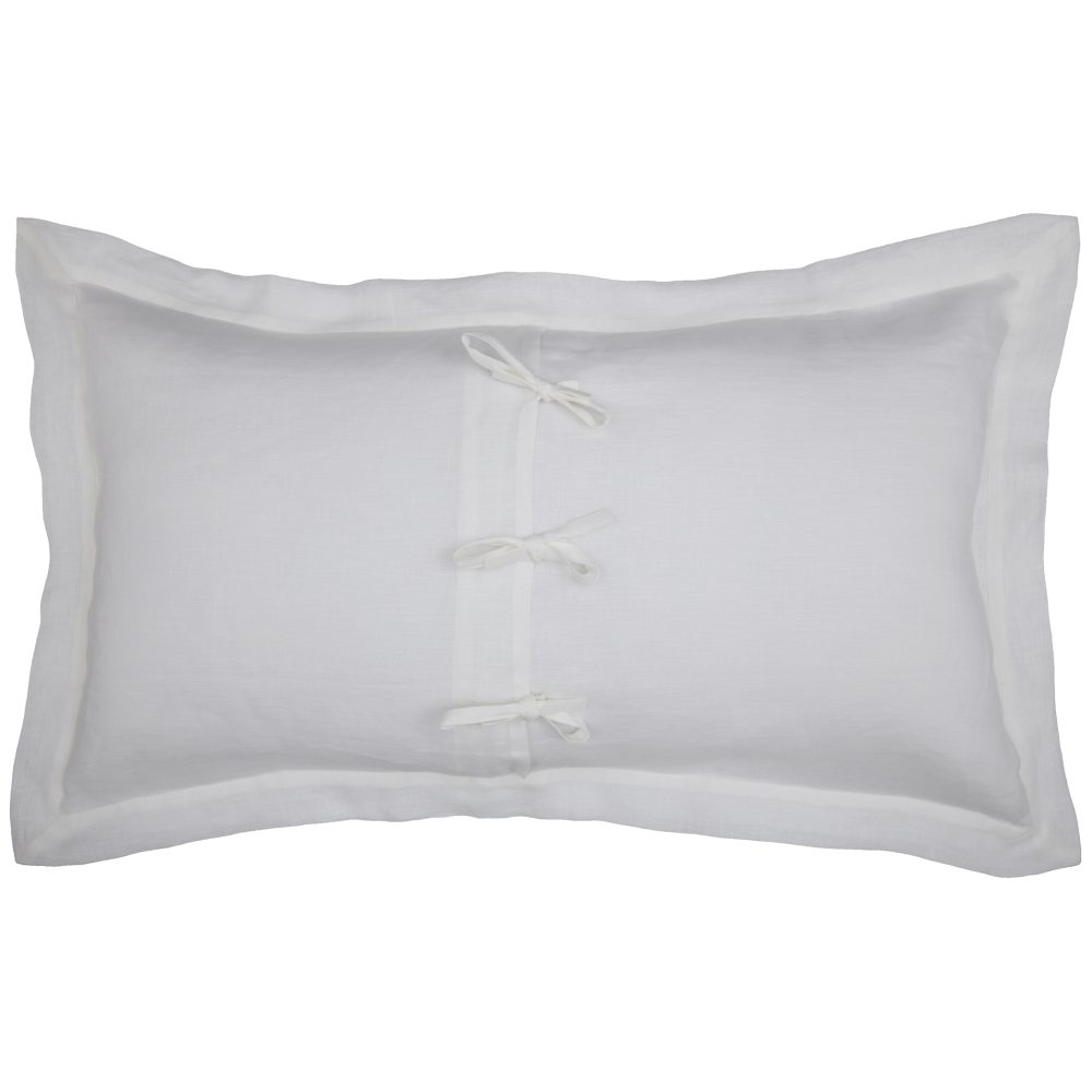 - Reverses to same luxurious white linen fabric on back w/ 3 fabric ties to keep pillow secure. Features 2 flange edge (all 4 sides).