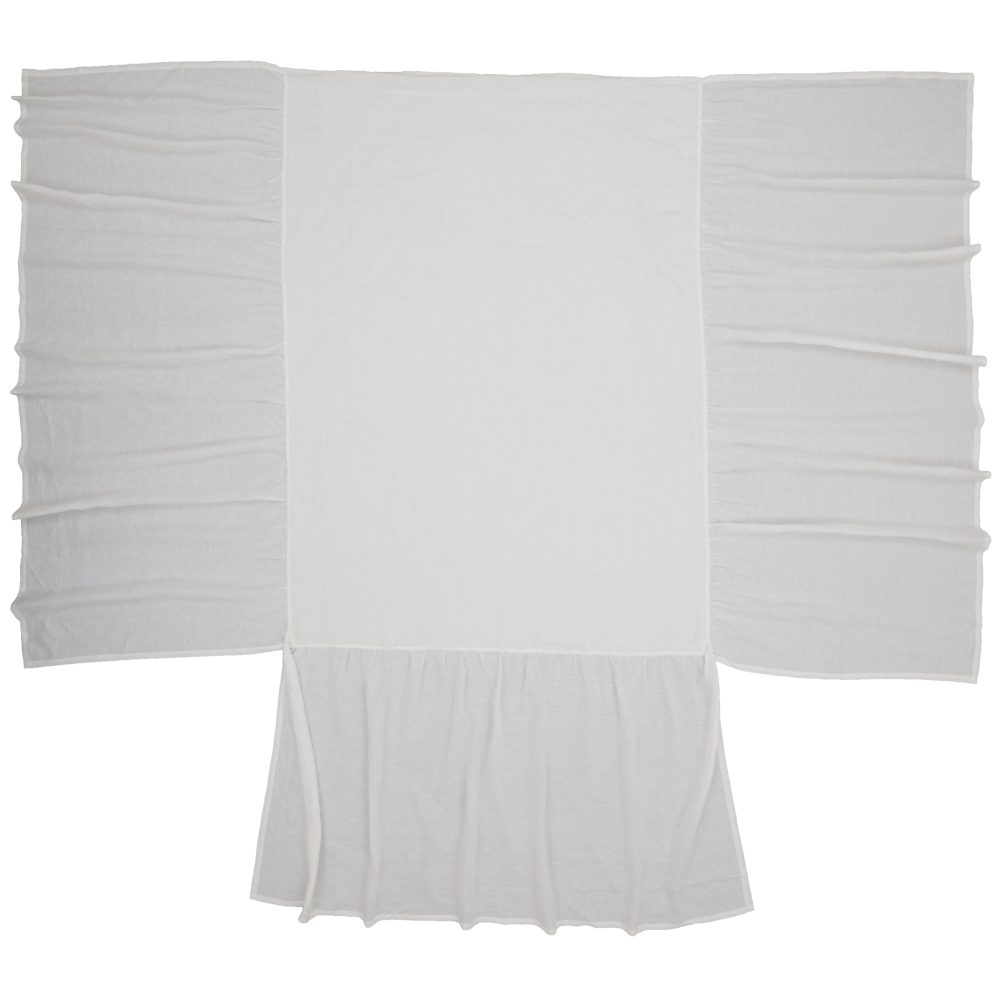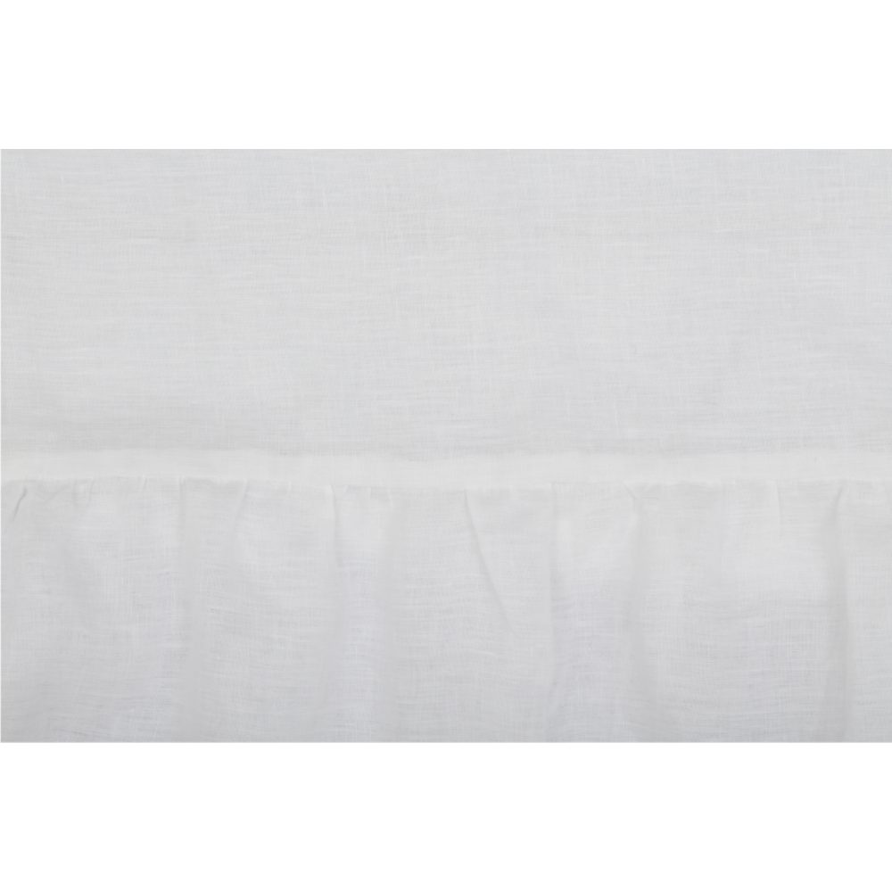 - Bedspread top & ruffle 100% Linen in crisp white. The durable fine flax fibers with its natural cooling properties is highly absorbent and wicks moisture away from body. Reverses to soft voile fabric, lined with flannel.